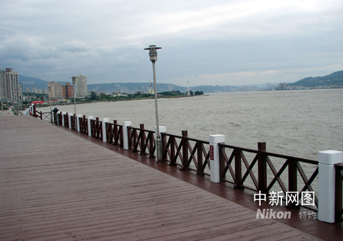 九月十五日,记者参观台北淡水老街。站在台北淡水渔人码头的栈道上远眺,可看见对面的观音山和出海口尽头的台湾海峡。作者:曾福志