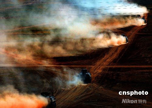 9月16日,中国人民解放军参加“砺兵--2008”演习部队进行实兵对抗训练。训练依山地复杂地形进行机械化立体进攻、防守,突出机械化、信息化、立体化现代作战特点。中新社发 宋吉河 摄