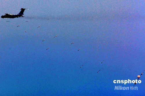 图为解放军空投兵力。中新社发 宋吉河 摄