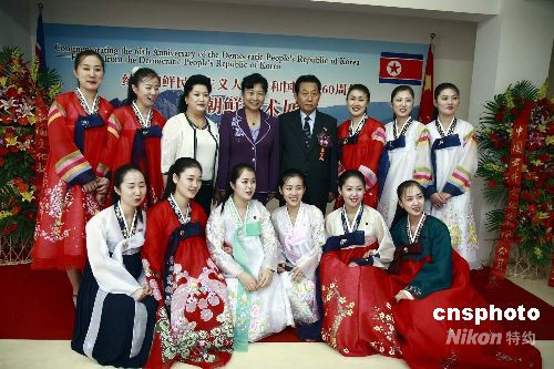 图为中华人民共和国文化部文化部副部长赵少华(二排左四)、朝鲜民主主义人民共和国驻华大使崔镇洙(二排左五)等出席开幕式。中新社发 邢利宇 摄