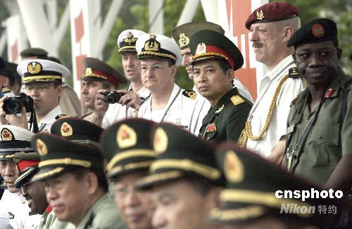 武官团观看了驻军的军事科目演示。中新社发 张勤 摄