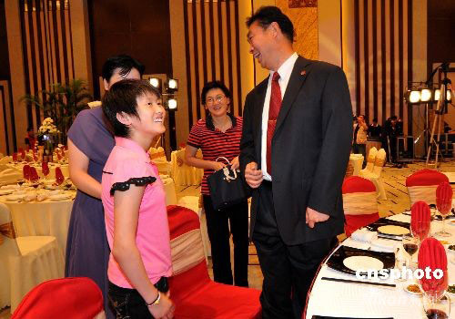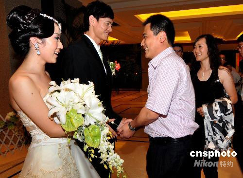 江苏省体育局局长殷宝林、奥运冠军陈若琳、吴静钰、邱健等众多好友出席了仲满的婚礼。中新社发 刘建民 摄