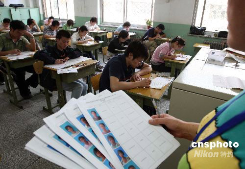 九月二十日,2008年国家司法考试举行。这是统一司法考试制度实施以来举行的第七次考试。司法部副部长赵大程等视察了北京育英学校考点。据统计,今年参加考试报名人数达三十七万余人,比去年增加了近八万人。全国共设立二百四十七个考区。中新社发 任海霞 摄