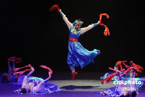 图为加州大学洛杉矶分校的“中国民族舞蹈社”表演舞蹈“蒙古人”。中新社发 张炜 摄