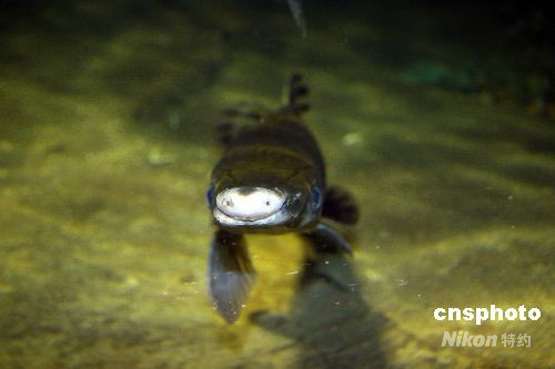 图为一种名为福鄂的鱼,生活在远古时期,与恐龙同属一个年代,约有2亿年。中新社发 翟羽佳 摄