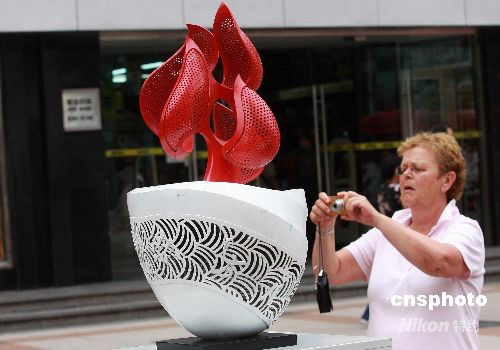 图:奥林匹克艺术品《圣火之梦》吸引外国游客