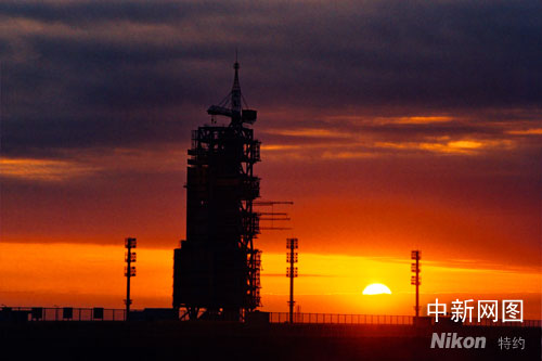 晨曦中的神舟飞船发射塔架。左赛春 摄