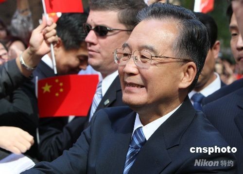 温家宝抵达纽约 数千华侨华人夹道欢迎