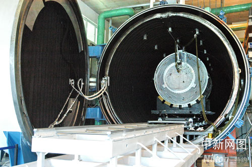 中国神舟七号载人航天飞船发射在即。图为飞船在进行测试。袁明月 摄