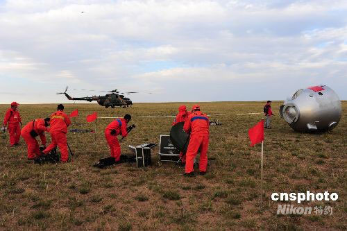 9月23日,“神七”工作人员进行返回舱搜救模拟演练。中新社发 周敬波 摄