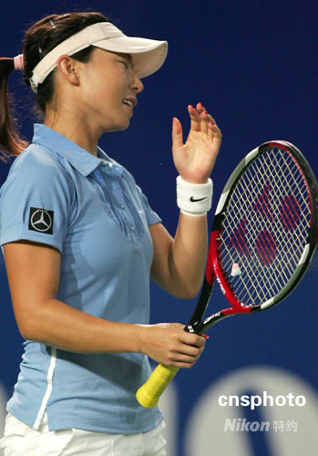 9月27日,2008年中国网球公开赛继续女单半决赛的争夺。在夜场的压轴大战中,中国选手郑洁挑战赛会4号种子俄罗斯姑娘库兹涅佐娃,最终郑洁不敌对手无缘决赛。中新社发 富田 摄