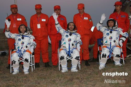 组图:神七航天员翟志刚刘伯明景海鹏回京