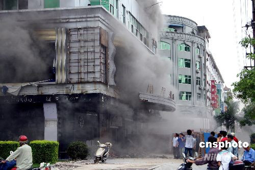 10月5日下午,广西玉林市玛田俱乐部在装修过程中不慎起火,致使正在施工的21名工作人员被困火场。经玉州消防大队官兵20多分钟奋力扑救,大火被扑灭,受困人员得以安全疏散。中新社发 吴海贤 摄