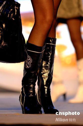 图:靓模美腿展示青花瓷元素时尚鞋秀(2)