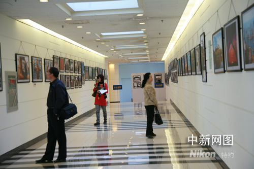 10月6日,“第二届杜邦杯环保摄影展”在北京大学百年讲堂揭幕。图为观众正在认真参观环保摄影展。 田博川摄