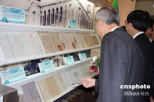图为台北市民在观看展出的珍贵档案。中新社发 耿军 摄