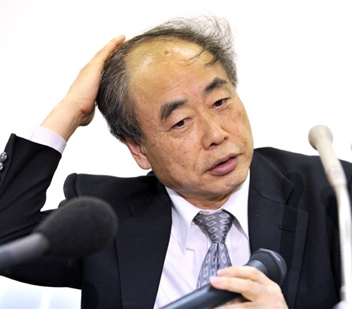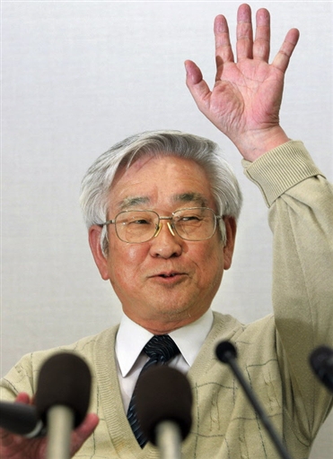 图为日本科学家益川敏英(Toshihide Maskawa)获奖后在东京招待会上向大家致意。