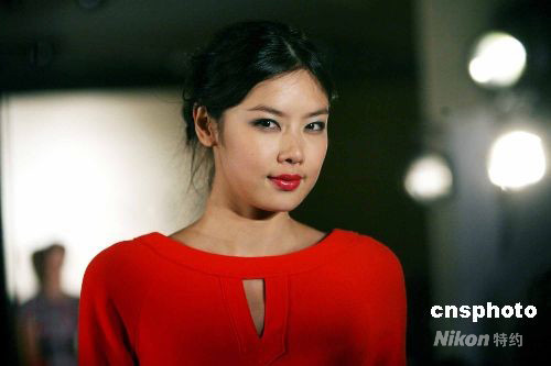 图为名模乐基儿演绎该品牌系列服饰。中新社发 洪少葵 摄