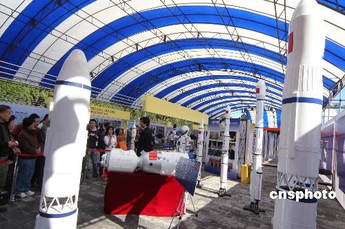 中国造"飞天"太空舱外航天服、"神七"模型亮相