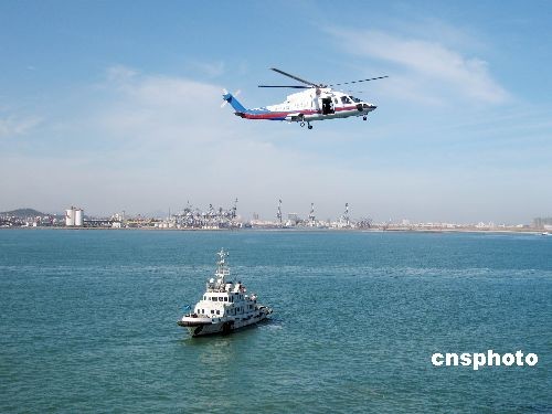 10月11日上午,中国交通运输部烟台海事局、北海救助局、北海第一救助飞行队等部门在渤海湾联合举行客滚船海空立体搜救演习。
