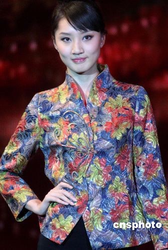 图为参加北京大红门服装模特大赛的选手展示中国时装作品。中新社发 钱兴强 摄