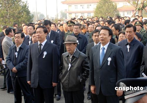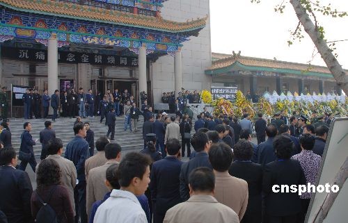 10月17日上午,山西省政协主席金银焕遗体送别式在太原举行。山西省政协主席金银焕在忻州调研返并途中突遇车祸,于2008年10月11日13:40不幸殉职,终年56岁。中新社发 张雷杰 摄