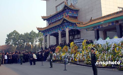 10月17日上午,山西省政协主席金银焕遗体送别式在太原举行。中新社发 张雷杰 摄