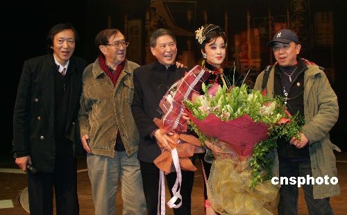 该组图片摄于2005年1月6日晚,由刘晓庆领衔主演的大型歌舞话剧《金大班的最后一夜》在上海隆重上演。这部大型歌舞话剧是根据白先勇先生的作品改编而成的,著名导演谢晋到场祝贺并向慈善基金会捐款。中新社发 潘索菲 摄