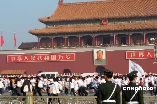 10月19日,2008北京国际马拉松赛在北京天安门广场鸣枪。中新社发 盛佳鹏 摄