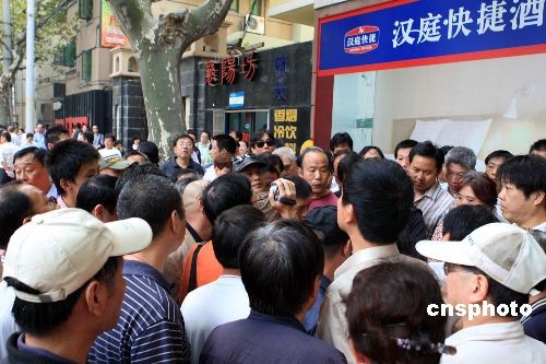 10月20日,众多上海市民聚集在上海“高院”边门襄阳路上,等待“杨佳袭警案”的审判。当日上午,“杨佳袭警案”在上海市高级人民法院第五法庭继续二审,法庭宣布驳回上诉,维持原判。中新社发 潘索菲 摄