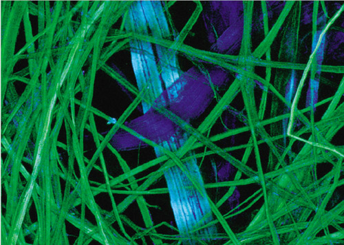 日本纸,查尔斯·卡兹勒克摄,放大100倍。图片上展示的范围比报纸上印刷的一个句号还小。拍摄技术:共焦。