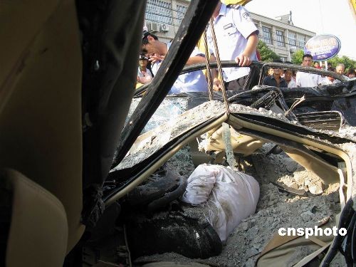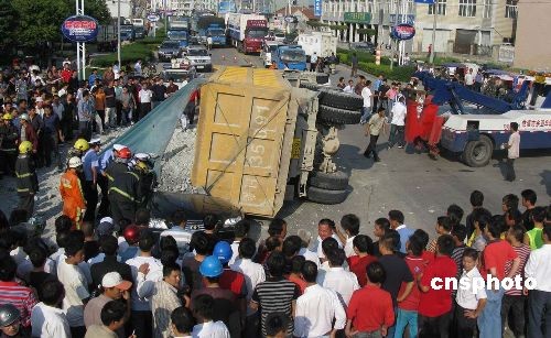 10月21日下午14时左右,一辆满载泥土的货车在浙江省慈溪市芦庵公路发生侧翻事故,将一辆轿车牢牢压住,成吨的泥土从车上倾泻而下,造成轿车司机死亡。目前,事故原因在进一步调查中。中新社发 何蒋勇 摄