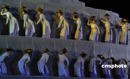 演员用舞蹈表现东盟成员国越南的乡村之美。中新社发 蒋雪林 摄