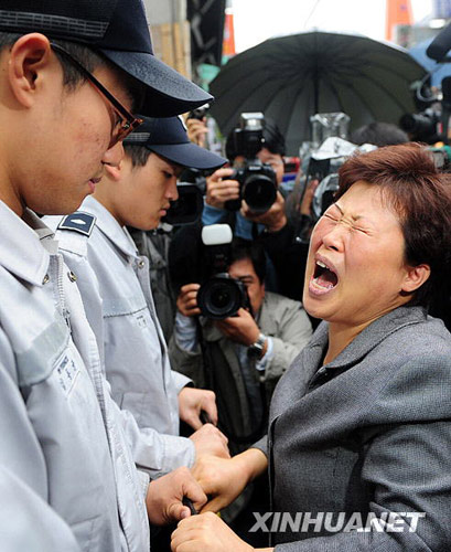 10月23日,韩国首尔某旅馆纵火行凶案遇难者家属在案发现场外悲痛不已。新华社/韩国纽西斯通讯社