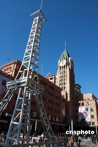 10月23日,北京秋高气爽,正值第七届亚欧首脑会议在京开幕之际,“亚欧文化之窗”大型活动在王府井大街拉开帷幕。亚欧会议43个成员国的旅游风景、名胜古迹图片展吸引众多目光。在各国设立的展区中,充满着各国特色的展台布置,带有民族风格的纪念品、展品能让游客对各国有更为直观的了解。图为法国展区以“埃菲尔铁塔”为装饰品来装扮自己的展台,吸引不少游客的目光。中新社发 郑雄增 摄