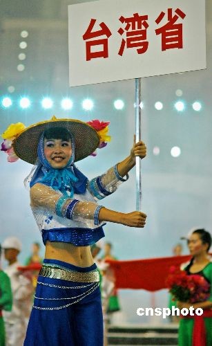 十月二十三日晚,参加第六届中国农民运动会开幕式表演的数千名演职人员正抓紧时间进行彩排,力争为广大观众献上完美演出。图为彩排时开幕式引导小姐身着具有泉州特色的蟳鯆装带领运动员进场。中新社发 傅丹丹 摄