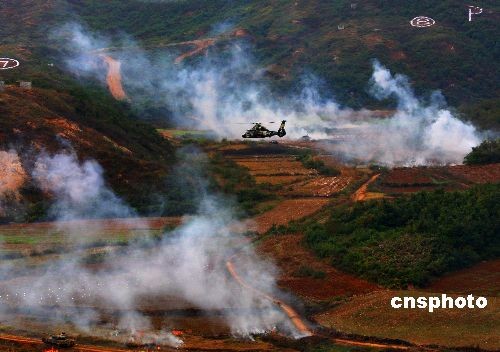 10月24至28日在确山合同战术训练基地,进行进行实兵、实弹训练。中新社发 宋吉河 摄