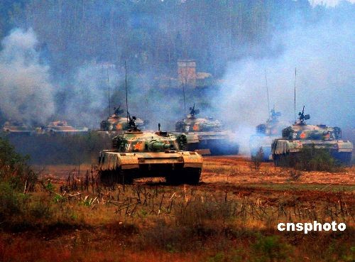 图为装甲部队对目标实施火力打击。中新社发 宋吉河 摄