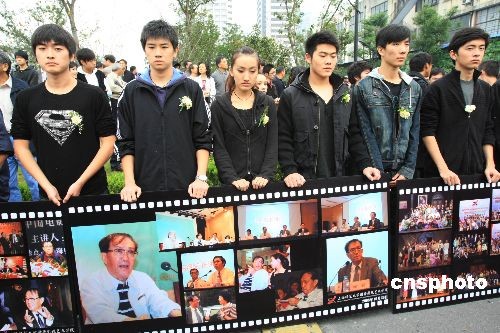 上海师范大学谢晋影视艺术学院的学生含泪送别恩师。中新社发 汤彦俊 摄