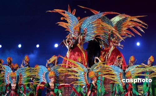 开幕式上,引导小姐身着极具闽南特色的鲟埔女装带领运动员进场。中新社发 王东明 摄