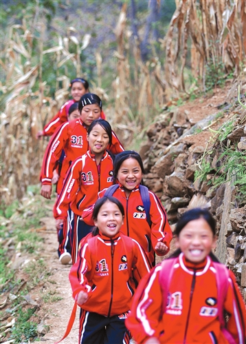 穿着志愿者送的校服,孩子们的笑脸显得格外幸福。