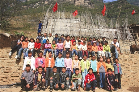 古路村小学全家福,灵魂人物申老师光着膀子笑坐中央。