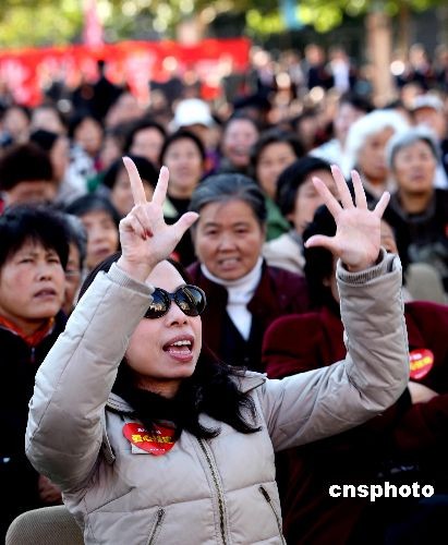 十月二十七日,北京怡海社区一位居民出资八千元买下拍卖的名人字画,拍卖所得款项用于援建在地震中毁灭的北川中学。中新社发 史利 摄