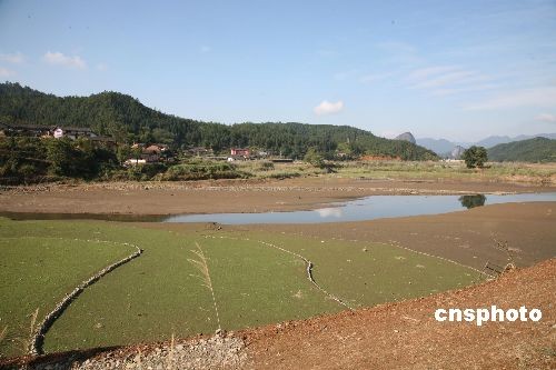 图为二十六日铜鼓县一村庄门前的一条河流因附近山地水土流失面临断流。中新社发 吴庆才 摄