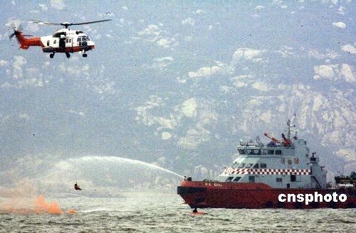 十月二十九日,解放军驻港部队与中国交通部海上搜救中心和香港特区政府有关部门,在香港南丫岛东澳湾举行联合搜救演习,展示和提高驻军协助特区政府救助灾难的实际能力。这是驻军第九次参加特区政府组织的同类演习。中新社发 张勤 摄