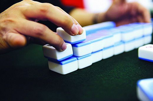 郭安迪演示麻将中的换牌技巧“蚂蚁上树”。秦楼 摄