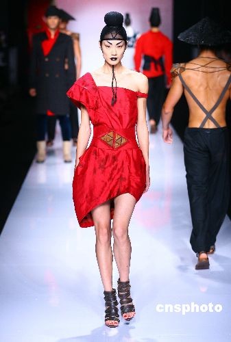 2008年10月30日,模特在2008上海时装周国际品牌发布会上表演。本季设计师最新秋冬作品灵感来自于中国象棋。中新社发 睿瀛 摄