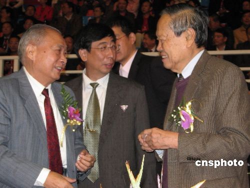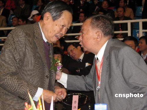 11月1日,在西南联大在昆建校70周年纪念大会上,诺贝尔奖获得者杨振宁与钱学森弟子、中国控制论与人工智能专家戴汝为院士相谈甚欢,共叙友情。