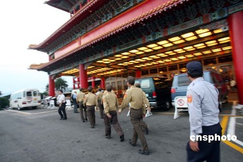 十一月二日下午,台北圆山饭店一带戒备森严。大陆海协会会长陈云林将于三日抵台入住圆山饭店,举行“第二次陈江会”。台北警方在圆山饭店外围约部署两百名警力维安。中新社发 洪少葵 摄