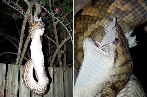 图:英国女子拍到蟒蛇吞吃鹦鹉全过程(2)